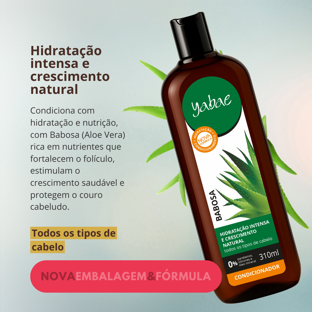 Condiciona os cabelos com hidratação e nutrição. Contém Extrato de Babosa / Aloe Vera que é rico em vitaminas e nutrientes que proporcionam hidratação e nutrição para o folículo piloso, estimulando o crescimento saudável dos fios, com hidratação intensa e ação dermoprotetora para o couro cabeludo.